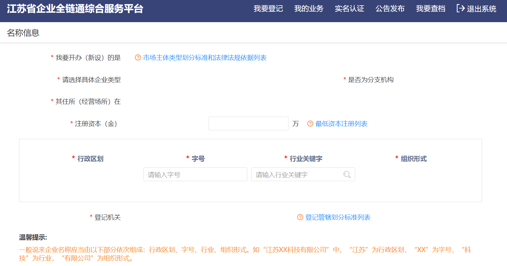 经过了解在江苏省政务服务平台中有一个【江苏省企业全链通综合服务平台】,可以在线上提交企业注册材料,于是去全链通平台看了一下,也大概了解了一点。
