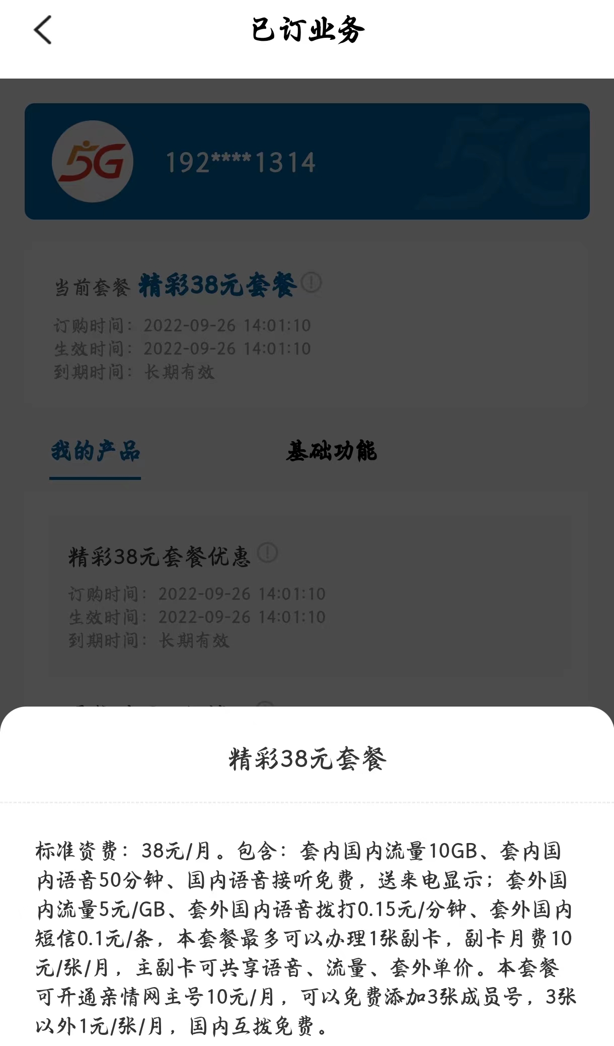 在入网登记之后,没过多久快递小哥就上门激活号卡了,因为我是把广电号卡当成备用卡使用,所以开通的是最低资费38元的精彩套餐【我以为的最低资费】