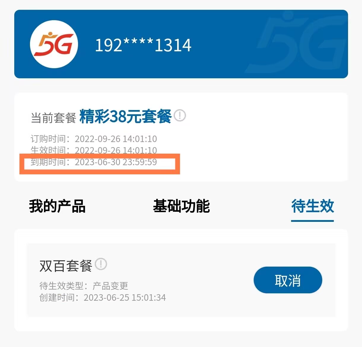 至此应该就完成了,本来我今天上午打算去营业厅看看的,但是外面下雨,就放弃了,正好下午收到客服联系,在线处理完成了。为什么我这么急呢,因为我知道套餐变更需要次月才行,如果6月没完成,7月我还是38元的精彩套餐,还要等一个月,所以这个变更争取在6月底之前就改好了。